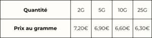 Expédition sous 24 à 48h dans un emballage neutre, sans mention de CBD.